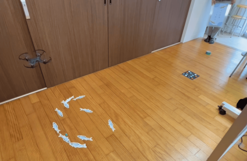 以前ドローンの体験会で行った内容の簡易版というような形で行いました。ドローンはプログラムで操作するので、プログラムの数値を変えてもらったりしてあゆつりを行いました。ドローンに触れる方も多数いらっしゃいましたのでみなさん楽しんでいただけたかと思います🐟