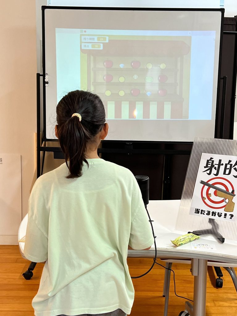 こちらもリアルの射的に近づけるようプロジェクターを使って大きな画面に的を映し出した射的です